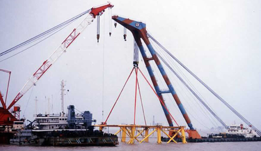 胜利新一号海洋钻井平台导管架吊装