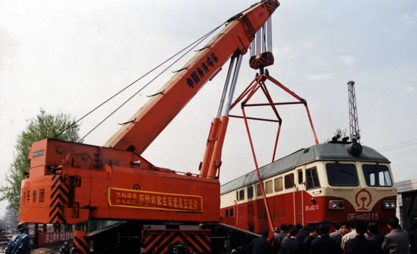 东方4型为中国铁路使用客货运火车类型之一,该机车整体重达138吨,上图为沈阳铁路局对该机车整体吊装放置作业工作。