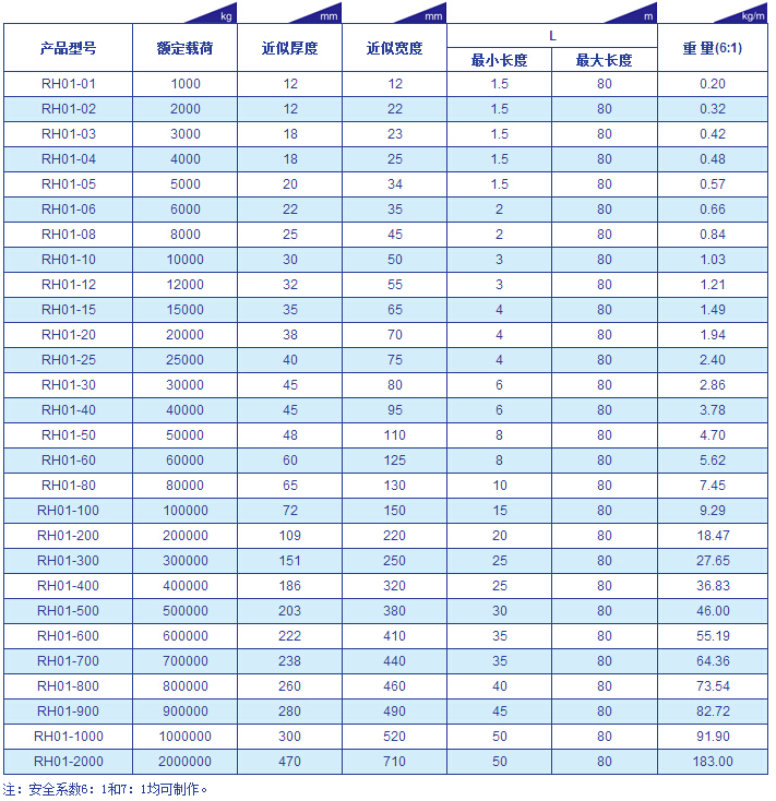 RH01型(高强环型)吊装带参数表