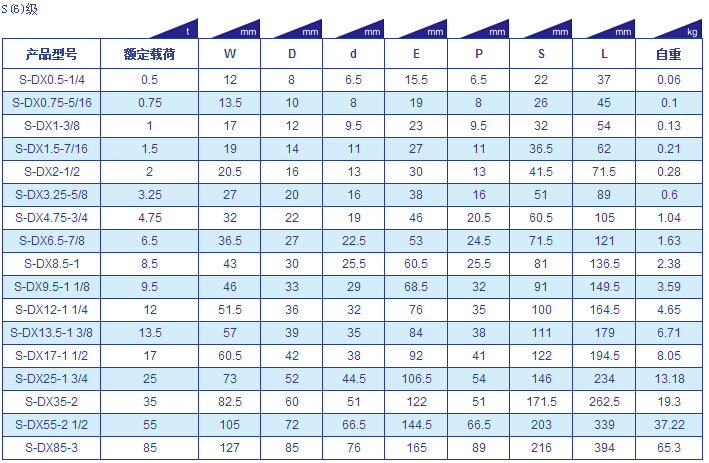 DX型卸扣参数表