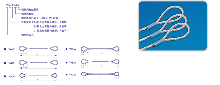直径φ90以上压制钢丝绳索具形式为每端压制两个铝合金压制接头;