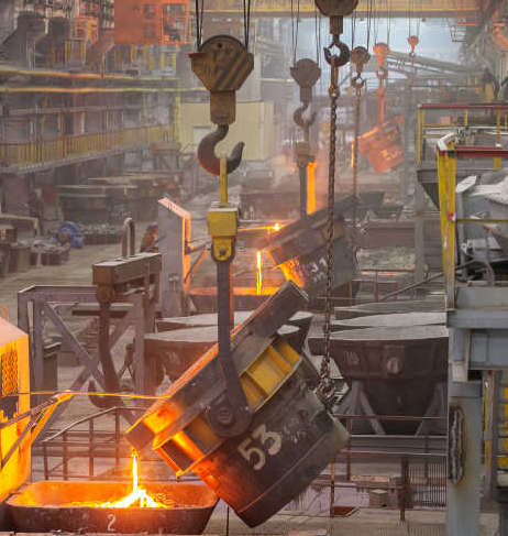 炽热钢水是熔融状态的钢,温度非常高,火红而炽热。钢铁企业生产现场,厂房内利用单肢链条索具钩挂着钢水容器桶,缓慢的将钢水倒入指定的容器内。钢水倒入过程中,工作人员必须全神贯注作业,任何细小的失误都可能造成重大安全事故的发生。